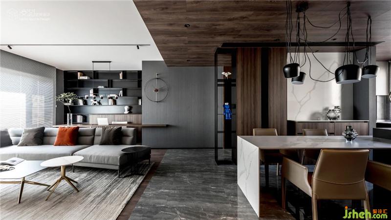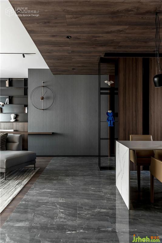 簡(jiǎn)潔有序的空間分割線,在不同的材質(zhì)間交織鏈接,利用塊面屬性質(zhì)感的差異,強(qiáng)調(diào)了線與面所形成的空間關(guān)系。