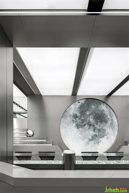 We use the "fundus camera" to observe the eyeball, which is the texture of the moon. We put it in the focus as the "super symbol" of [WONDERFUL WINDOWS], and the service desk is lost in space like a "spaceship", so the route is in a rotary mode. This dynamic line is the experience gained by the designer during his visit to the British Art Museum. The vertical and horizontal appearance system is like viewing with a magnifying glass. Museum level lights attract light seeking creatures. After all, the light in the wormhole is the guide to salvation.