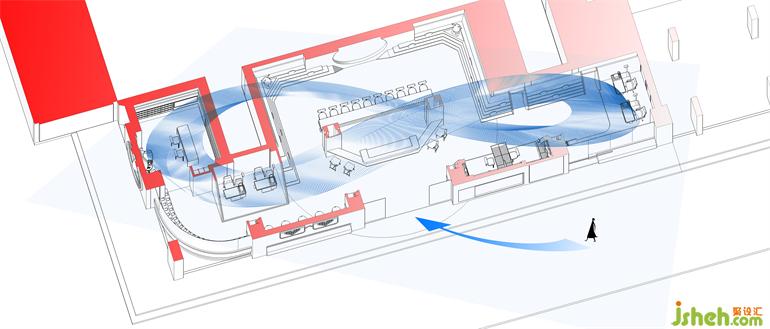 ▲行為動(dòng)線/總臺(tái)處于莫比烏斯環(huán)的交匯處