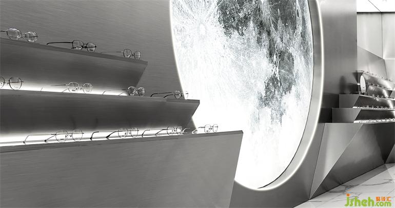 “逐層遞進(jìn)”優(yōu)化了正常平視以下高度的產(chǎn)品展示區(qū)域,展廳設(shè)計(jì)以顛覆大眾對(duì)眼鏡展示的刻板印象。這需要對(duì)尺度的精準(zhǔn)控制,是柔和而理性的并非強(qiáng)烈的抽離。也更強(qiáng)調(diào)了佩戴審視的體驗(yàn)感。