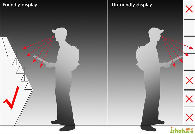▲經(jīng)過(guò)多次尺寸推敲確定以階梯式陳列方式為主導(dǎo)