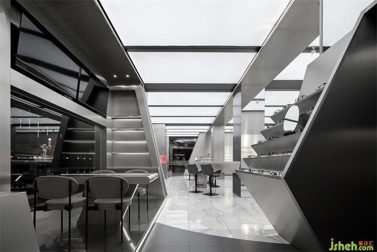 客候區(qū)是開(kāi)放的空間,區(qū)位分散均勻分布,讓客人隨時(shí)可以入座。目光所及均是專(zhuān)業(yè)的領(lǐng)域,總臺(tái)可以很好兼顧到“等待者”的需求。展廳設(shè)計(jì)內(nèi)外融合的環(huán)境和享受咖啡的小愜意場(chǎng)所。寸土寸金的黃金區(qū)位適當(dāng)?shù)目諘缳x予更多的聯(lián)想空間,砂鋼的空間基調(diào)始終貫穿,皮質(zhì)觸面的長(zhǎng)凳在硬派的空間內(nèi)是柔軟的存在,傳達(dá)一種安全感的庇護(hù)暗示。