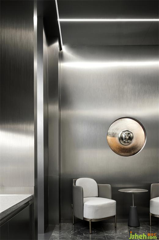 The waiting area is an evenly distributed open space where guests can sit down at any time. Appreciate and understand the area of expertise in front of you. The front desk can meet the needs of the "waiting person". A small and comfortable place to drink coffee. Although the rent is very high, it provides more associative space in the golden position. The spatial tone of sand steel runs through. Leather chairs are particularly soft in hard wired spaces, providing a sense of security.