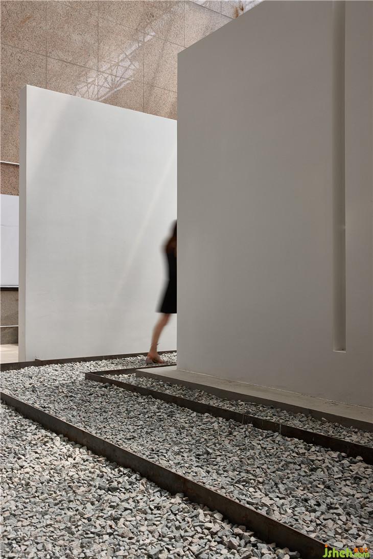 過道的右側(cè)通往會議室;左側(cè)是一條迂回的路徑,既可以近距離看展品,又形成一個新的動線關(guān)系,豐富空間的層次。
