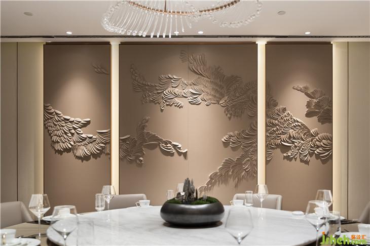 鑒于地處濱海城市深圳的核心區(qū),我們借用古典文學(xué)中曹操一首《觀滄?!窞樵O(shè)計(jì)靈感源泉,結(jié)合騰訊科技企業(yè)愿景為設(shè)計(jì)依托,表達(dá)一種氣勢(shì)磅礴,吞吐日月,包羅星漢的氣概??偛蛷d和諧的劃分為大小包房?jī)蓚€(gè)部分。大包房的設(shè)計(jì)體現(xiàn)了一種可供參考的尊貴高雅的餐飲方式與精神追求。