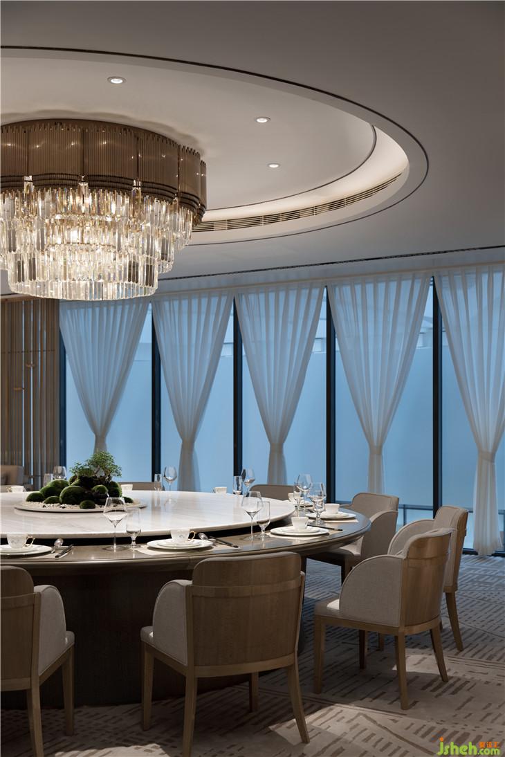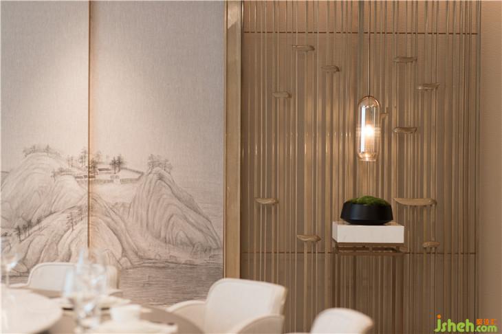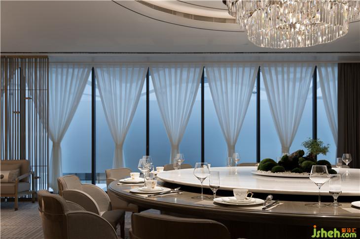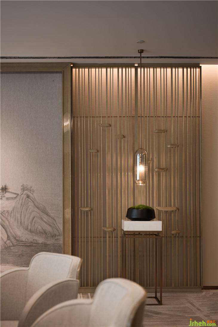 屏風(fēng)的錯落隨意的布置尤如海面上的漁船及風(fēng)帆,寓意乘勢揚(yáng)帆而上鑄就輝煌。吊燈的元素來自項(xiàng)目的地理位置引發(fā)的設(shè)計(jì)構(gòu)思,通過以現(xiàn)代復(fù)合材料進(jìn)行藝術(shù)手法塑造成波浪,追求水波蕩漾的自然感,金屬質(zhì)感邊框做成波光粼粼的點(diǎn)綴。展現(xiàn)設(shè)計(jì)者對自然及力量的一種追求。