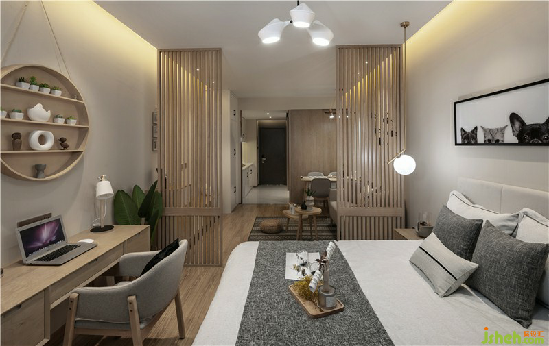 現(xiàn)代日式家居住宅的自然樸素,簡潔干凈是Muji的主旋律。生活在鋼筋水泥中的都市,人人心中都有一份對自然與休閑,回歸原始的初心。設(shè)計者在純白色的空間里,以原木,米色,灰色,淺卡其色的融合色調(diào)打造出一個素雅質(zhì)樸,優(yōu)雅純粹的生活環(huán)境。