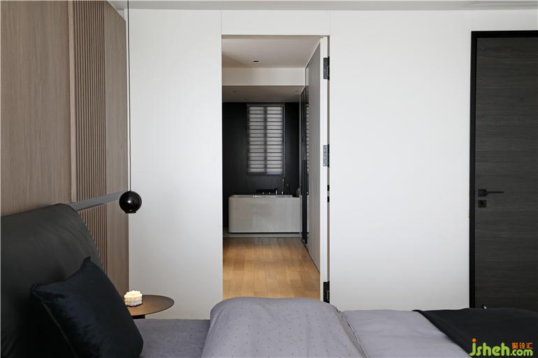 衛(wèi)生間和衣帽間摒棄傳統(tǒng)房門隔斷,做了一個綜合的開放綜合功能區(qū)域,龍巖家裝設計簡約的線條和勞倫黑金的巖板造就潔凈的環(huán)境,細節(jié)品味相得益彰。