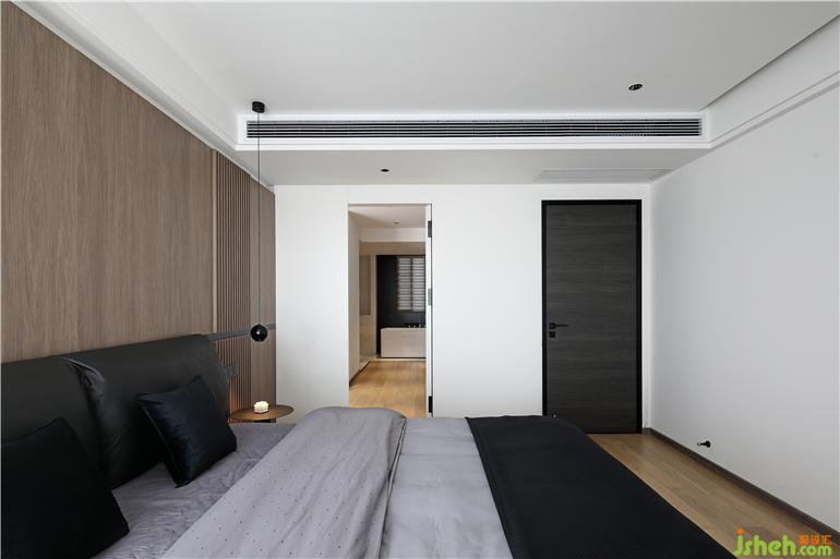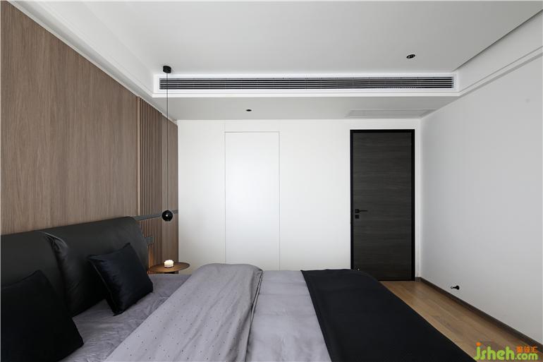 主臥運用木色營造溫馨、舒適的休憩環(huán)境。龍巖家裝設計簡約的吊頂設計,柔和的燈光營造氛圍,在純白的背景襯托下,更顯脫俗質感。
