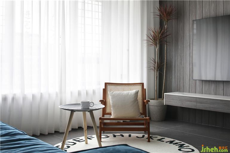 公共區(qū)域得營(yíng)造上,用少量的色彩去表述空間,龍巖家裝設(shè)計(jì)運(yùn)用了材質(zhì)的不同和對(duì)比,溫潤(rùn)的木色電視墻、細(xì)膩的微水泥沙發(fā)背景墻、自然的藤編餐椅,以及巖板餐桌材質(zhì)的加入,用輕靈的筆觸去構(gòu)建平衡。軟裝上的錦上添花,在處理過材質(zhì)、線條的平衡之后,從色彩的角度重新審視空間,磨砂皮的湖綠沙發(fā),溫暖的單椅和地毯,清新的綠植靈動(dòng)多變,卻不搶空間的整體質(zhì)感。