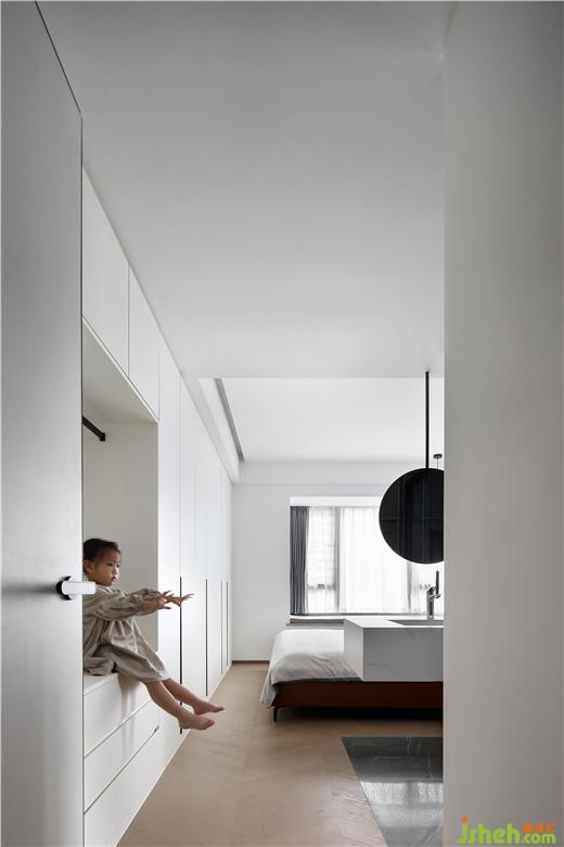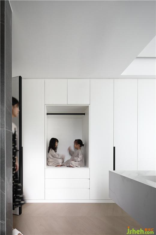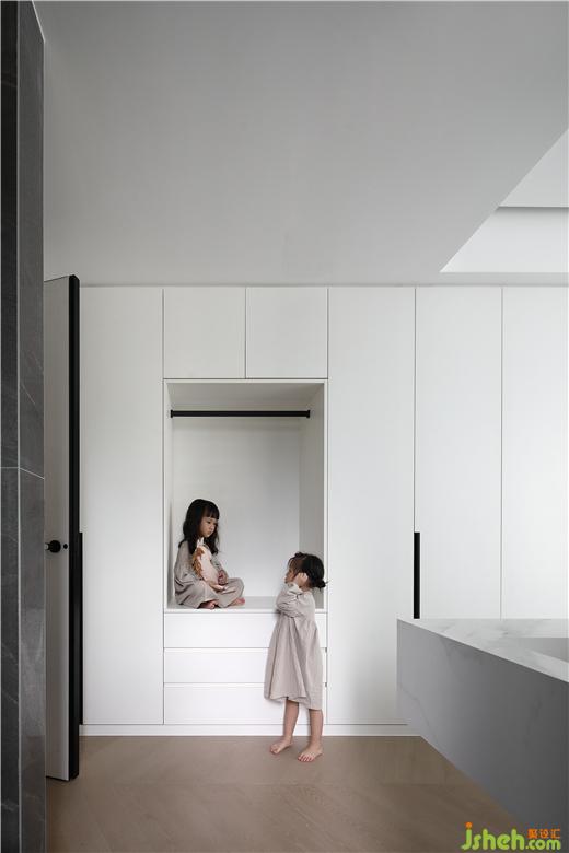 在空間的主動(dòng)線上,祛除非必要的裝飾、隔墻,化零為整,使空間開朗舒適,擴(kuò)大留白部分,均勻分布,龍巖家裝設(shè)計(jì)讓光線和視線自由流動(dòng)。本案的入戶視角,利用隱框門、白色定制柜體,弱化入戶過道,使餐廳實(shí)現(xiàn)最大化,并充分利用空間的互補(bǔ)性,用現(xiàn)代手法使餐廳實(shí)現(xiàn)了多功能化,既是餐區(qū)又是兒童的書桌區(qū),其樂融融,悠然自得。退一步恬靜優(yōu)雅,進(jìn)一步溫柔浪漫。