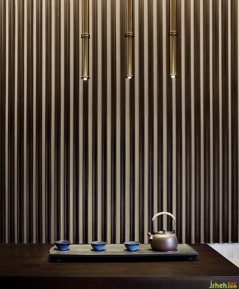 “觀水有術(shù),必觀其瀾”依山傍水,素有“文化之鄉(xiāng)”觀瀾版畫基地享譽(yù)海內(nèi)外。人文特色和文化底蘊(yùn)是鵬城一角最真實(shí)的寫照。一禪一松,手法流露出“中正平和”的中方哲學(xué)思想?!吧菅拧崩渖{(diào),洋溢出賓客尊貴的格局,同時(shí)彰顯出其主人心中獨(dú)特待客之道。室內(nèi)設(shè)計(jì)師以“淡酒邀明月,香茶迎故人”的心境吸取靈感,冷峻木色與筆挺點(diǎn)面,簡(jiǎn)中提精的震撼人心。
