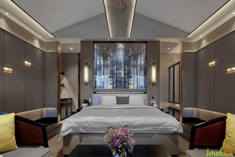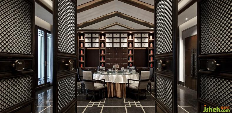 背景墻獨(dú)有古銅木條,組成可賞內(nèi)景,枯山水景吊燈,室內(nèi)設(shè)計(jì)師獨(dú)到的手法讓天花呈現(xiàn)“弧”的形態(tài),天花不同層高很好的整合,很好體現(xiàn)會所靜雅氣韻和地域本先文化的歸屬。