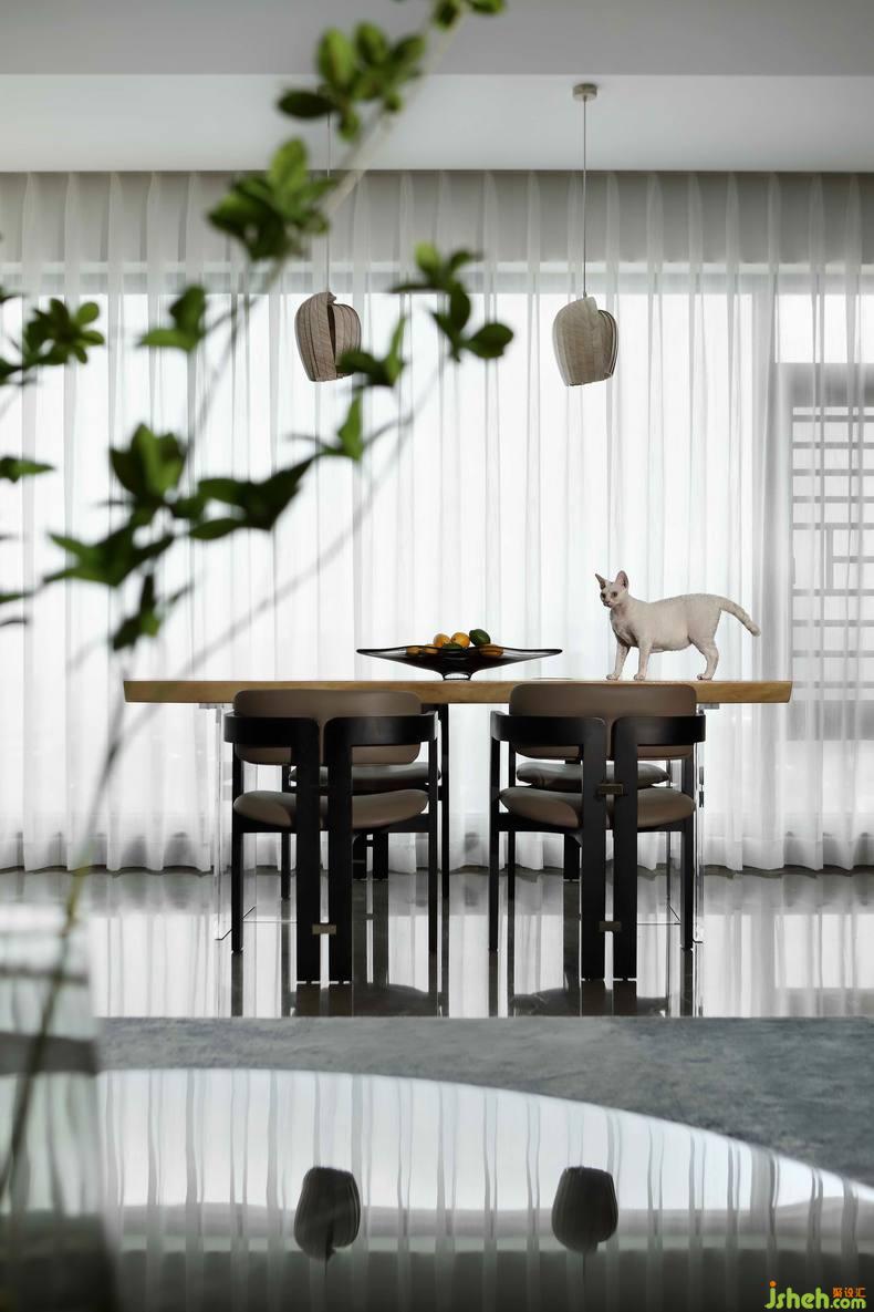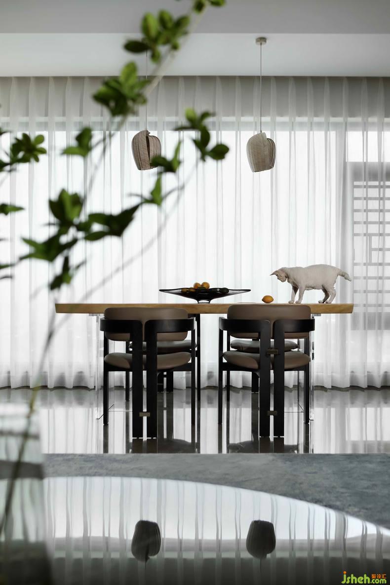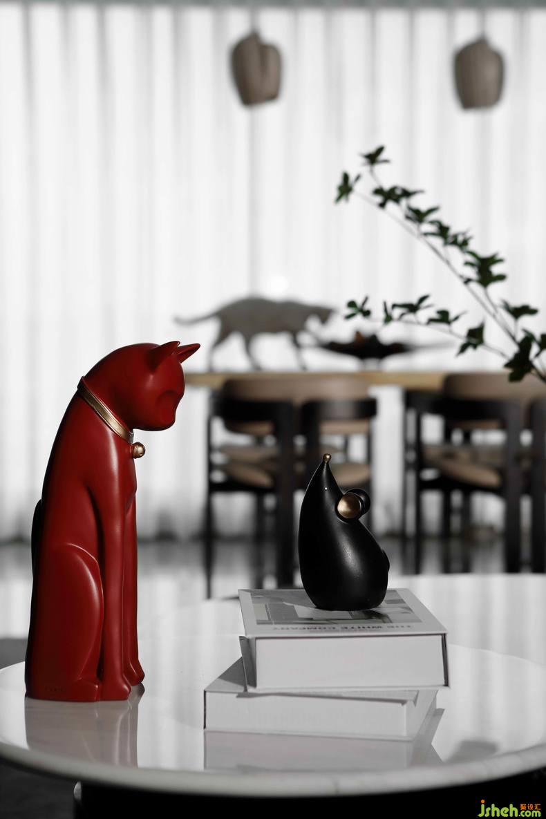 利用軟裝引入樹蔭、小鳥、形成落葉與玻璃形成互動,更是自然與空間相映成趣鏡像化表達(dá)。揭陽住宅設(shè)計(jì)在設(shè)計(jì)師構(gòu)想下,空間不僅承載了自然場景,也引入家具語境,軟裝飾品點(diǎn)綴也是空間的一大內(nèi)核。