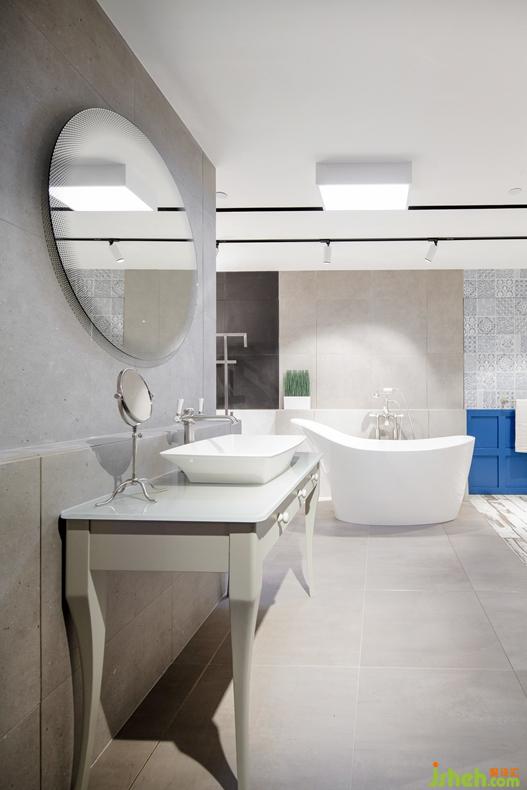 Lim + Lu林子設(shè)計想要創(chuàng)建現(xiàn)場式的購買目錄體驗,即消費者視野范圍內(nèi)的所有產(chǎn)品都可購買。為了實現(xiàn)這一構(gòu)想,Lim + Lu林子設(shè)計對Colourliving的建筑材料、飾面、衛(wèi)浴潔具、配件、配飾及照明在內(nèi)的所有庫存進(jìn)行了梳理。最終,使Colourliving所提供的產(chǎn)品得到全面地展示,所有所見都可購買:從浴室的固定裝置,到香味擴(kuò)散器,再到墻上的瓷磚,甚至掛鉤和掛鉤上的浴袍。從新古典主義的藍(lán)色墻面背景,到帶天窗的全混凝土區(qū)域,每個場景都運用了不同的材料和色彩方案?;顫姷姆凵?、綠色和金色點綴了整個空間。