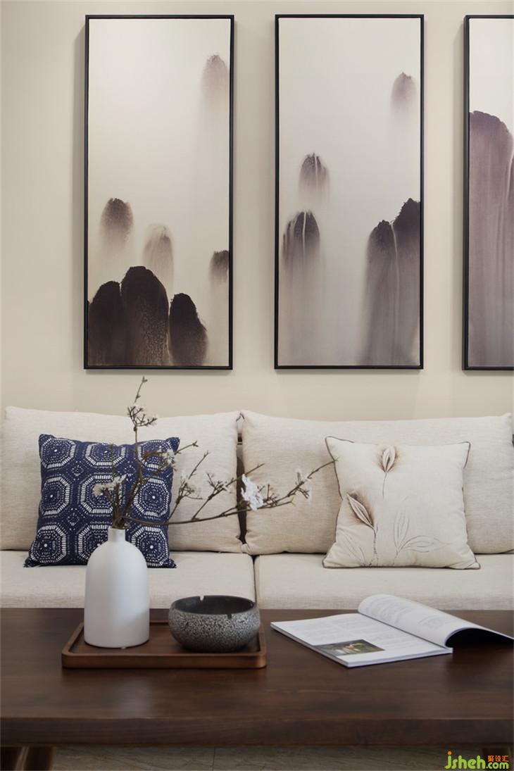 墻上的掛畫是一幅山水畫配上新中式的裝修風格,更能體現(xiàn)出中國古老的傳統(tǒng)美學。