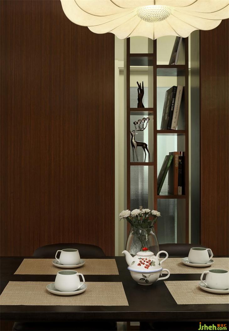 餐廳采用通透的格架代替隔斷,不僅遮擋衛(wèi)生間,同時也劃分區(qū)域。木飾面也暗藏了儲藏功能,足以收納所屯的那些書和用品。