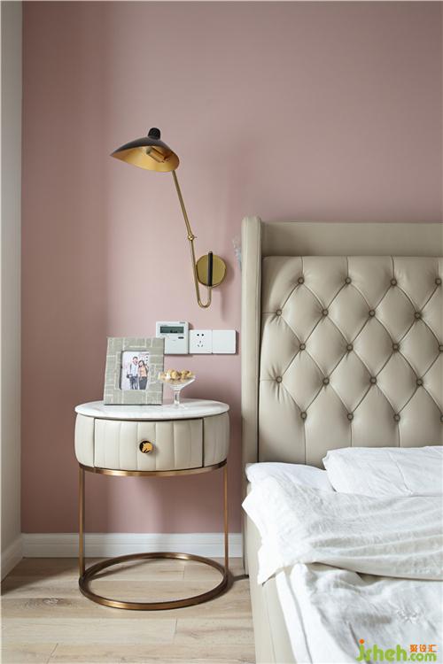 莫蘭迪粉色的背景散發(fā)寧靜祥和的氛圍配以米色皮質(zhì)家具,室內(nèi)設(shè)計師金屬壁燈點綴其間,精致與細膩溫柔了空間;