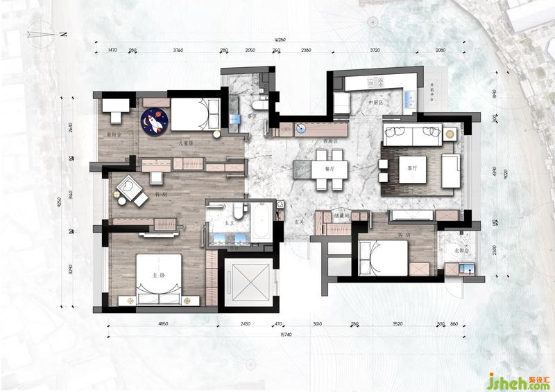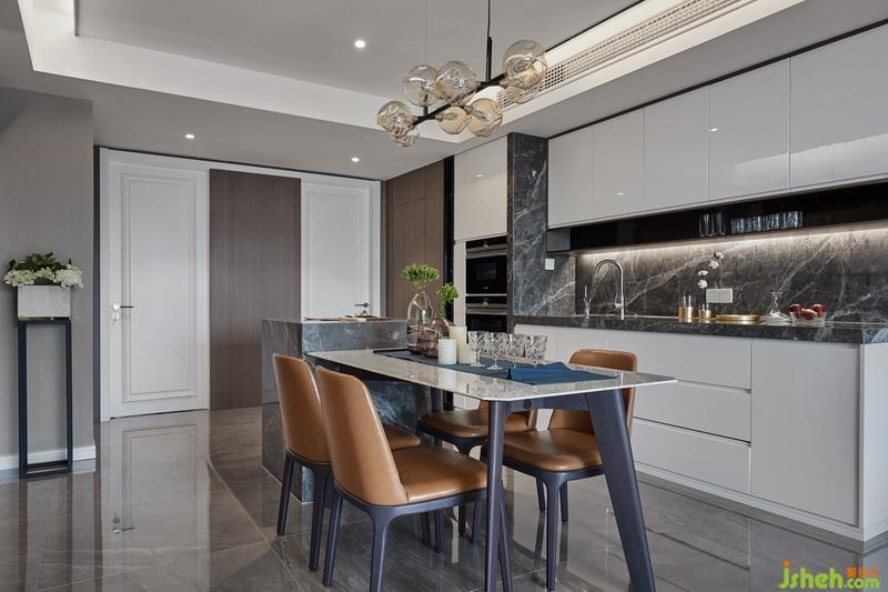 簡(jiǎn)約卻不簡(jiǎn)單,撲面而來(lái)的現(xiàn)代雅,簡(jiǎn)簡(jiǎn)單單的感覺也可以打造出很有質(zhì)感的家。設(shè)計(jì)公司借用客衛(wèi)和走廊的面積擴(kuò)大了餐廳,留出了中島臺(tái)的位置,使餐廳功能更豐富,入戶右手邊的缺角部分做成了儲(chǔ)物間,增加了整個(gè)家的儲(chǔ)物功能。