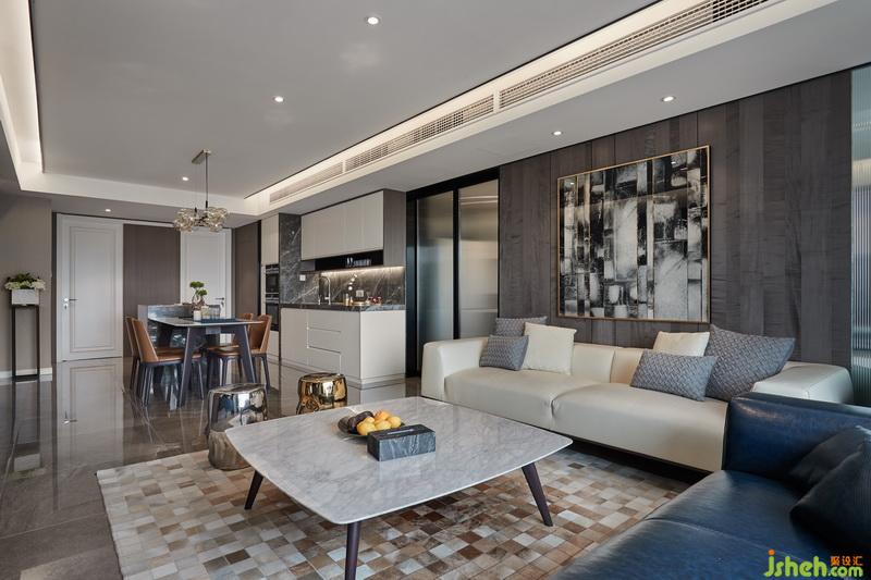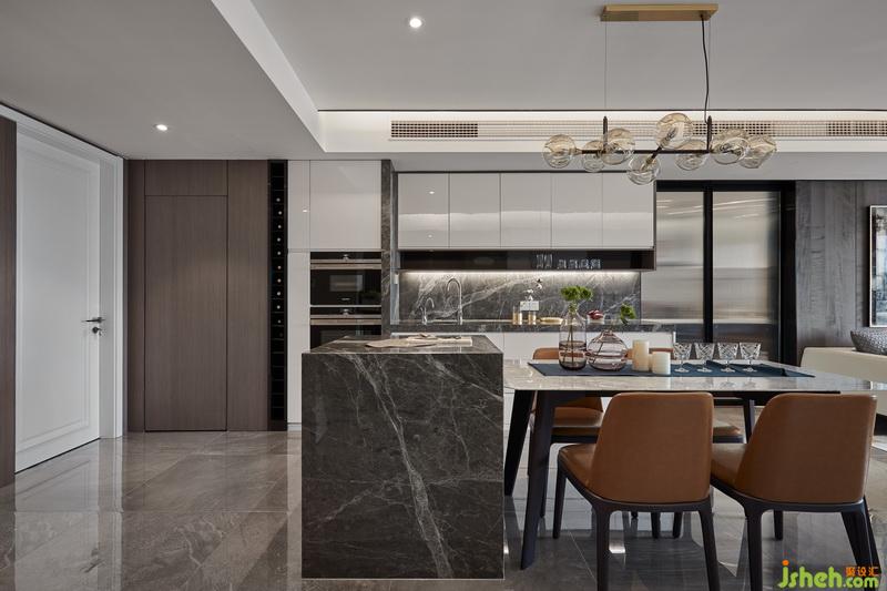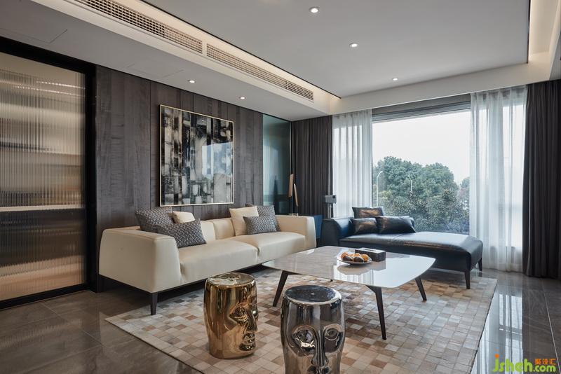 對(duì)精致簡(jiǎn)約的欣賞和熱愛,注定了要將空間的統(tǒng)一性做到最好,而且要把細(xì)節(jié)和寫意一一呈現(xiàn)。窄邊不銹鋼的是分割塊面和收口材料的上選,設(shè)計(jì)公司利用木質(zhì)和石材的結(jié)合提升空間的居住舒適度,藝術(shù)玻璃將不同區(qū)域銜接隱藏,隔而不斷,硬包則帶來(lái)細(xì)密的線條感。燈光氛圍對(duì)于提升空間的層次作用顯著,同時(shí)也有很實(shí)用的功能。家具的款型和面料則與硬裝呼應(yīng)補(bǔ)充,相得益彰。
