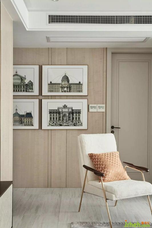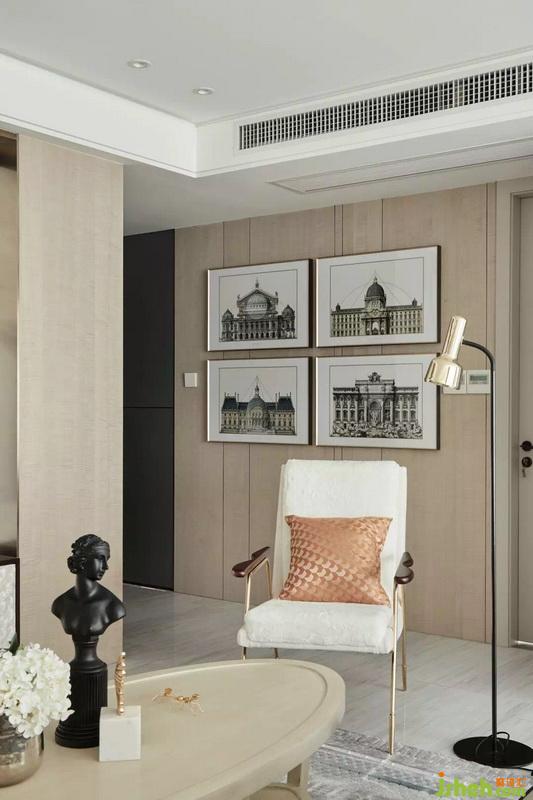 資訊爆炸的互聯(lián)網(wǎng)時(shí)代,每天過量資訊接收已經(jīng)讓大腦重復(fù)超載,變成一種無形負(fù)擔(dān)。因此在整體設(shè)計(jì)方面,室內(nèi)設(shè)計(jì)師選用清透素雅的香檳色、米白色作為主色調(diào),營造出可以稀釋焦慮、釋放壓力,讓人靜下來的雅致場所。