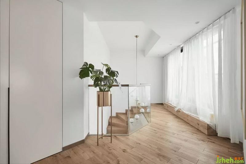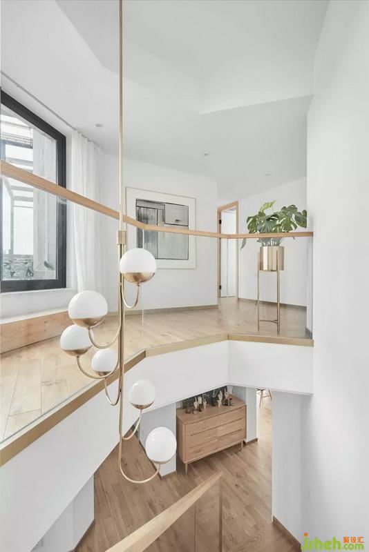 到達二樓的樓梯平臺,紗簾微垂,微風徐來,帶著紗簾舞動的畫面。身心愉悅放松,無異于是海邊度假般的體驗。