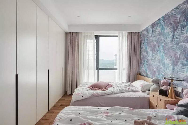 兒童房的設計設計公司從原來的想法,轉(zhuǎn)變?yōu)榱肆硪环N。從有兒童滑梯的高低鋪,改為兩張一樣大小的兒童床。這次更改是出于對兩個女兒安全的考慮,媽媽在這方面花了不少心思。房間的整體色彩,以溫馨色系為主,粉色為主要色,簡潔大方的同時滿足了小女孩們對私人房間的憧憬。女孩們做了一回小小設計師,房間隨處擺放的小公仔是由她們自己挑選的,過程中尊重了她們自己的喜好。擺放的小公仔也使得整個空間更加溫馨可愛。