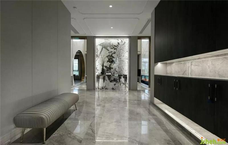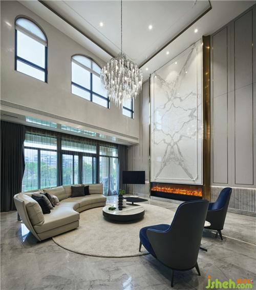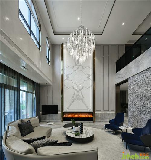 首層作為整個空間的首要視覺傳達(dá)接觸點(diǎn),人文理性和情感的比例排布,別墅裝飾運(yùn)用石材、金屬、墻紙等不同材質(zhì),縱向拉伸空間高度,橫向交織功能隔區(qū),與9米高輕盈大氣的中空設(shè)計(jì),在輕質(zhì)、簡奢的空白處中,衍生出自然的萬千形態(tài),烘托舒適自然、時(shí)尚別致的氛圍。