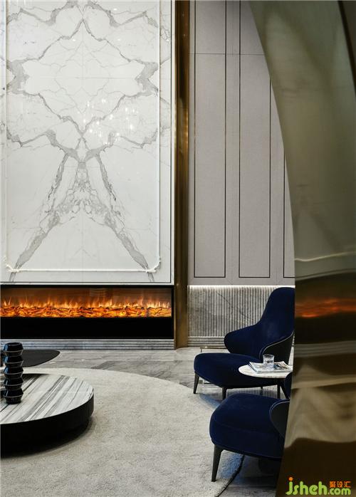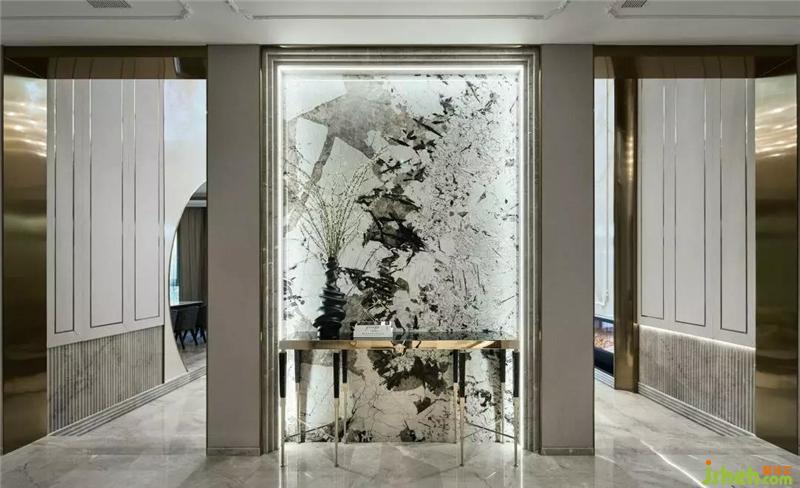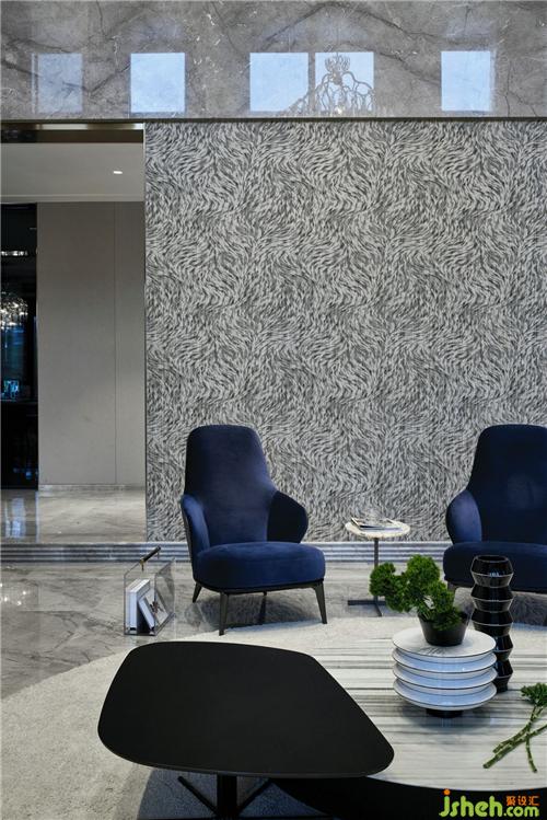 迎面寫意抽象的大理石壁畫使空間放慢了呼吸,留出想象。