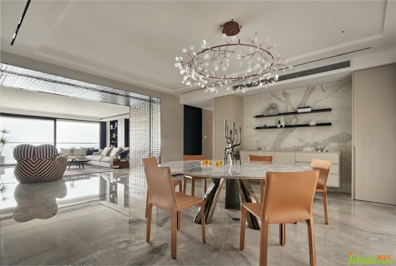 空間是容器,墻與物在內(nèi)形成共鳴,而藝術(shù)是空間的眼,是空間的引力;角落里人體雕塑落地?zé)舻拇嬖?,裝修公司使整個(gè)空間更具藝術(shù)氛圍。