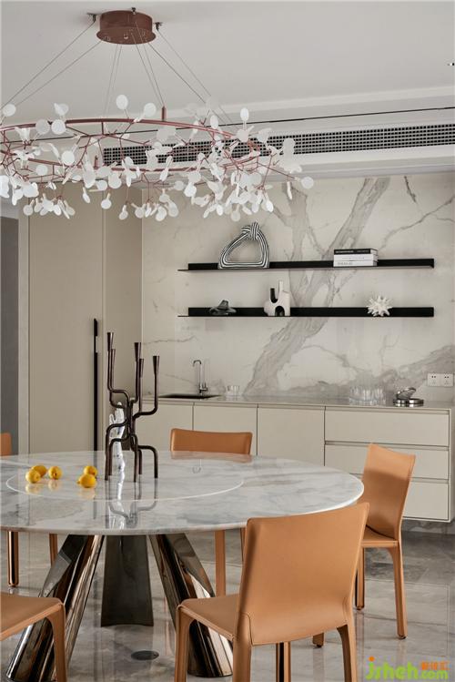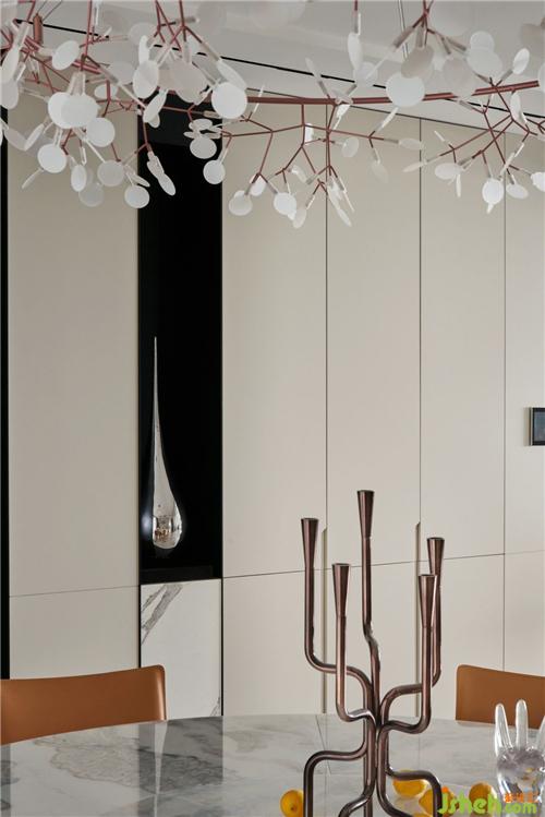 視線回轉(zhuǎn),暖黃色的餐椅點(diǎn)亮了整個(gè)餐廳的溫度,水吧臺的設(shè)置,補(bǔ)充西廚的簡約功能,同時(shí)用作備餐臺,滿足不同情境下的使用需求,MOOI個(gè)性螢火蟲吊燈星光閃爍中,記錄著家人團(tuán)聚共餐的美好時(shí)光。