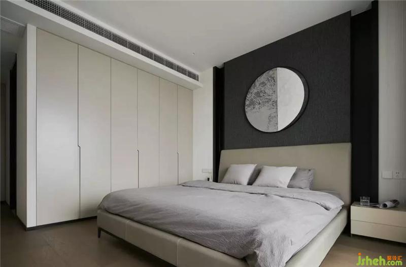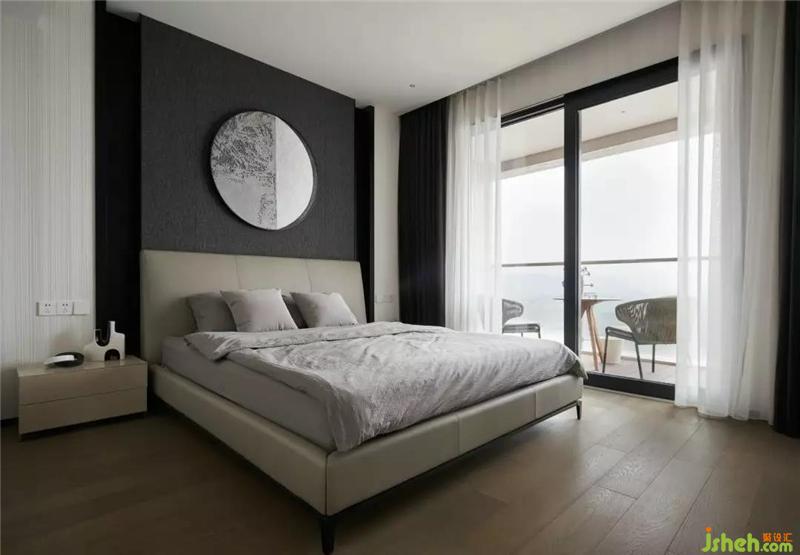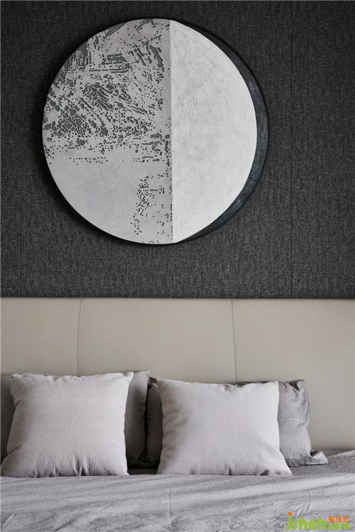 主臥室意式輕奢的簡練語言在大圓弧半落地窗的映射下,更彰顯大氣風(fēng)范,灰色木紋裝飾墻面搭配金屬邊柜給人以時尚之感,低調(diào)的氛圍中彰顯沉穩(wěn)、活力的氛圍特色。