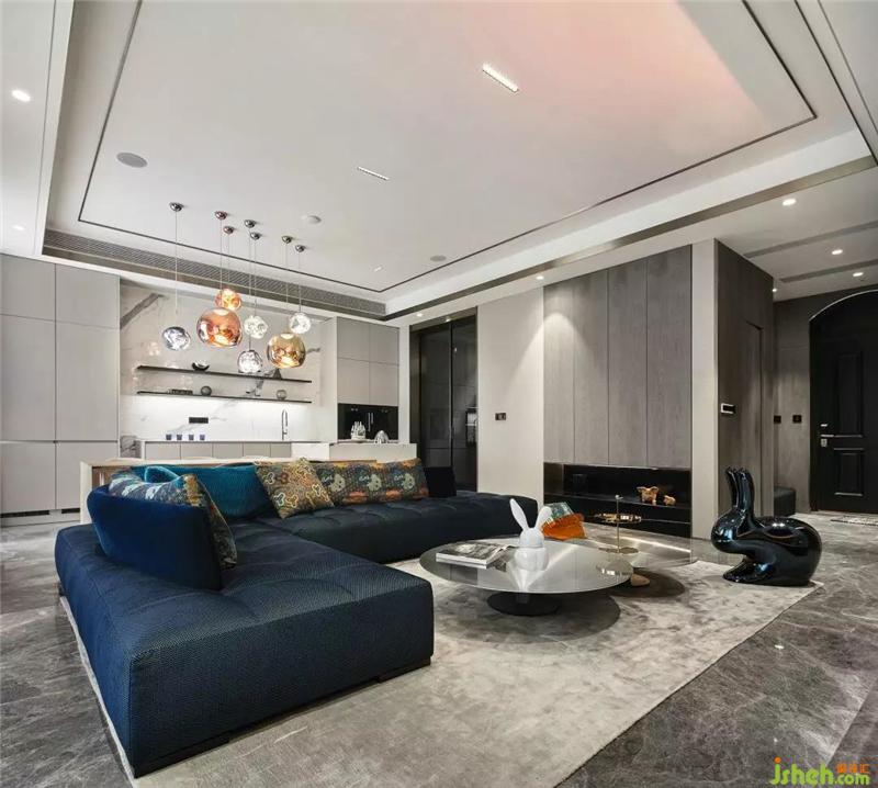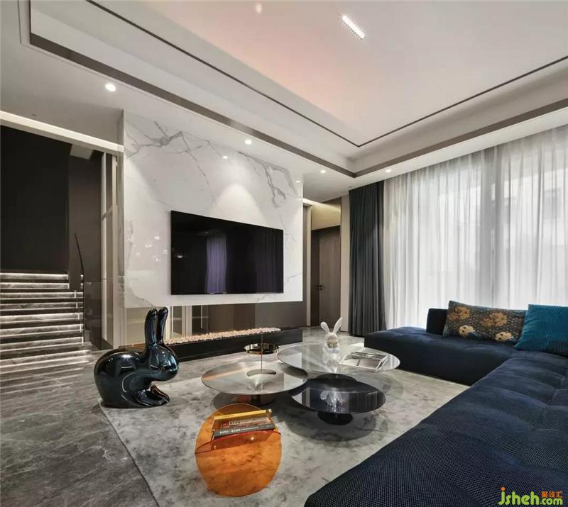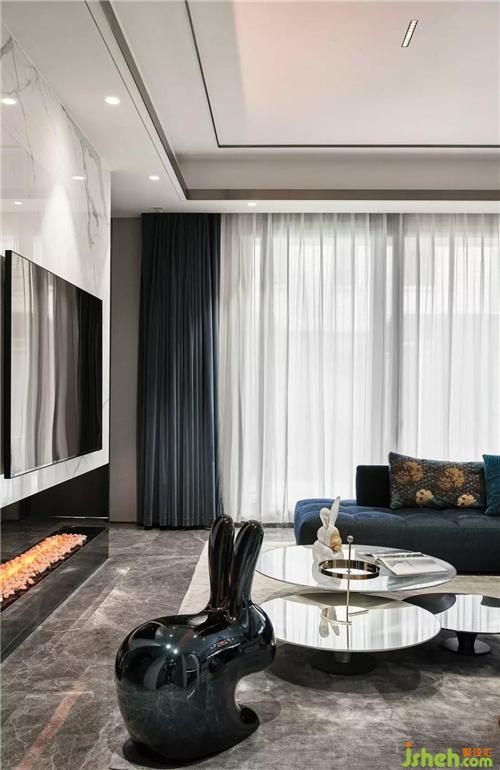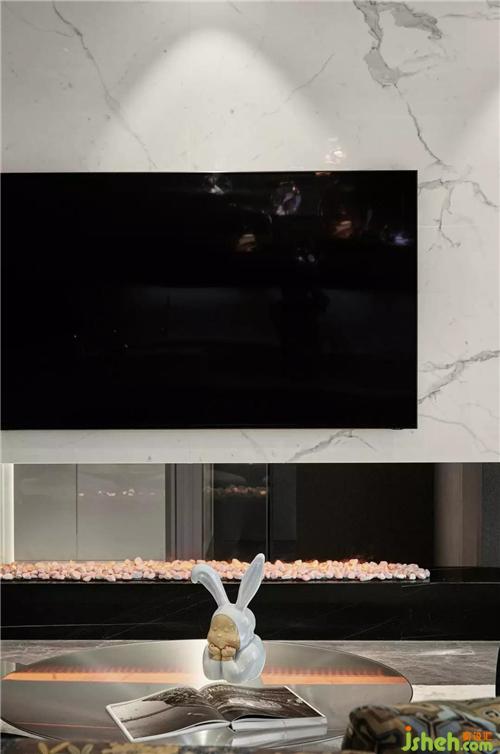 懸浮的電視墻設(shè)計(jì),增加了空間的視覺(jué)延續(xù)性;真火壁爐的星火光芒、羅奇堡的沙發(fā)和茶幾、稀奇藝術(shù)品的擺件,整個(gè)空間優(yōu)雅時(shí)尚,彰顯著主人對(duì)生活的態(tài)度。