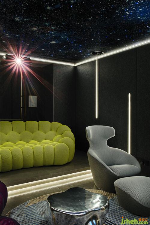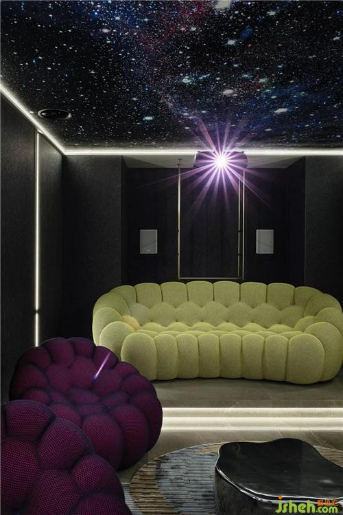 影音室在設(shè)計(jì)師的巧妙布置下,Bubble沙發(fā)像是置身星辰大海下五彩斑斕的夢(mèng)境,燈光和材質(zhì)完美呈現(xiàn)各自的魅力,空間交融互通,從細(xì)節(jié)到氛圍充分展現(xiàn)給客戶一個(gè)理想的體驗(yàn)空間。