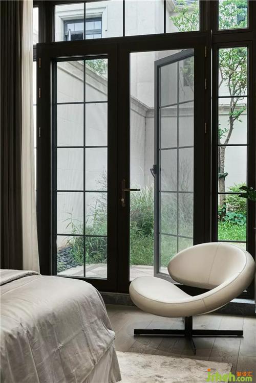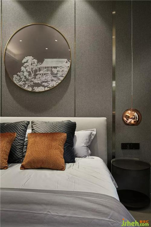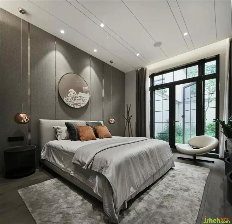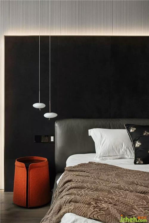 主人房深灰色硬包的背景,猶如夜晚降臨,引導(dǎo)進(jìn)入房間的人兒放下白天的疲憊和喧囂別墅裝飾,準(zhǔn)備一個(gè)深度的睡眠,給身體機(jī)能一個(gè)飽滿的修復(fù)。
