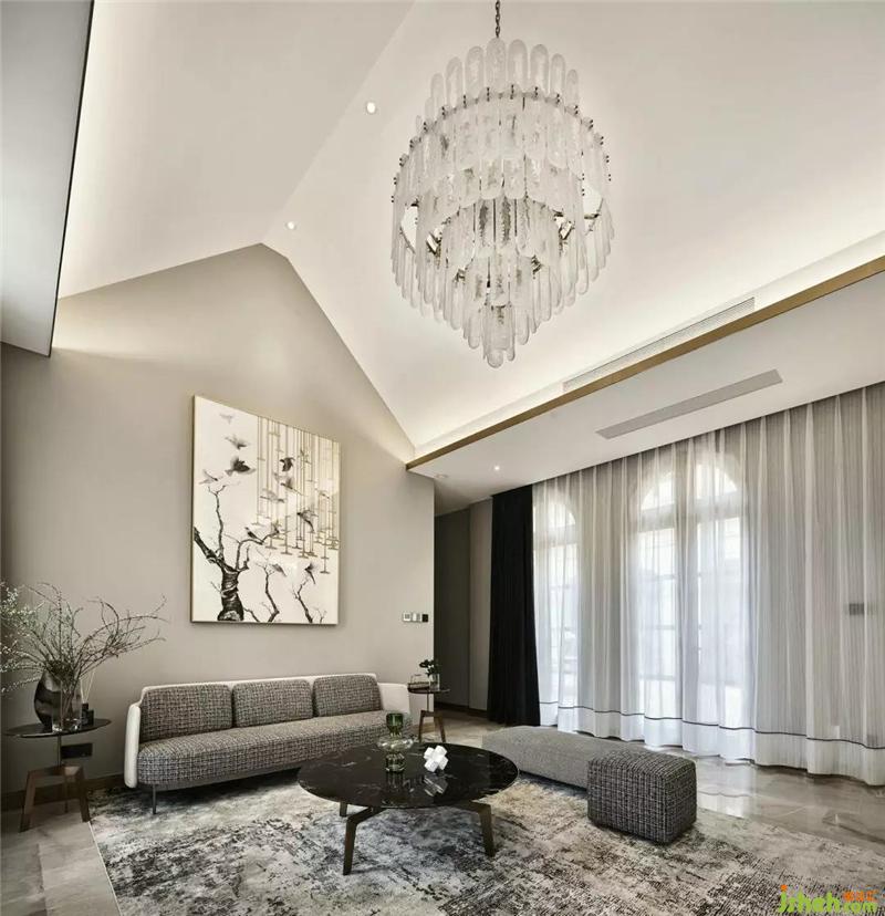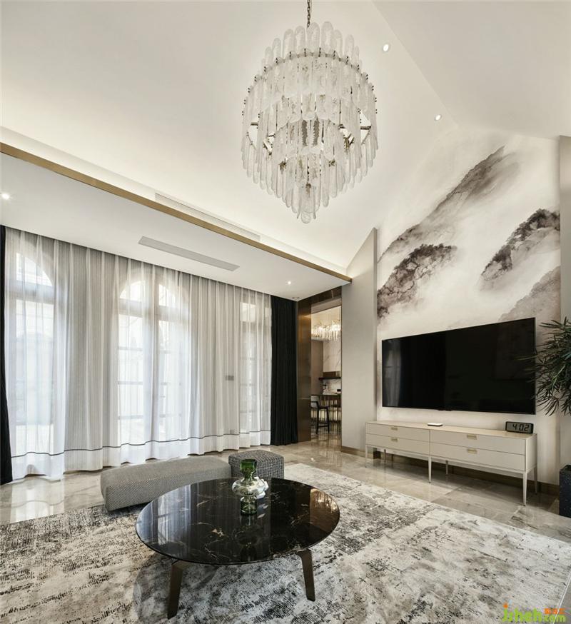 空間的視覺焦點——樓梯,具有大型裝置藝術(shù)品的吊燈,呼應(yīng)玻璃的護欄和金屬扶手蜿蜒而上,以線條交織出充滿轉(zhuǎn)折的流暢美感,抬頭便是一副令人贊嘆的“藝術(shù)畫作”。