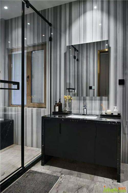 黑白灰系的主衛(wèi),恰到好處的優(yōu)雅質(zhì)感,瓶藝杯盞,俯拾即是,溫馨生動。