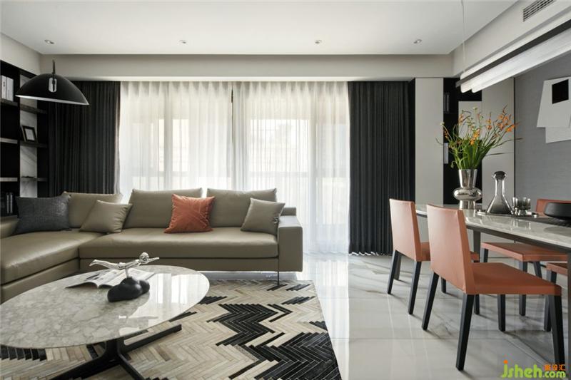 小空間里面做出大視覺,這個(gè)需要設(shè)計(jì)師巧思的構(gòu)圖,背靠陽(yáng)臺(tái)的沙發(fā)打破了傳統(tǒng)靠墻擺放,杭州裝修設(shè)計(jì)和餐廳的空間共享,打造視覺開闊的同時(shí)更符合一家三口溫馨互動(dòng)的生活情景,