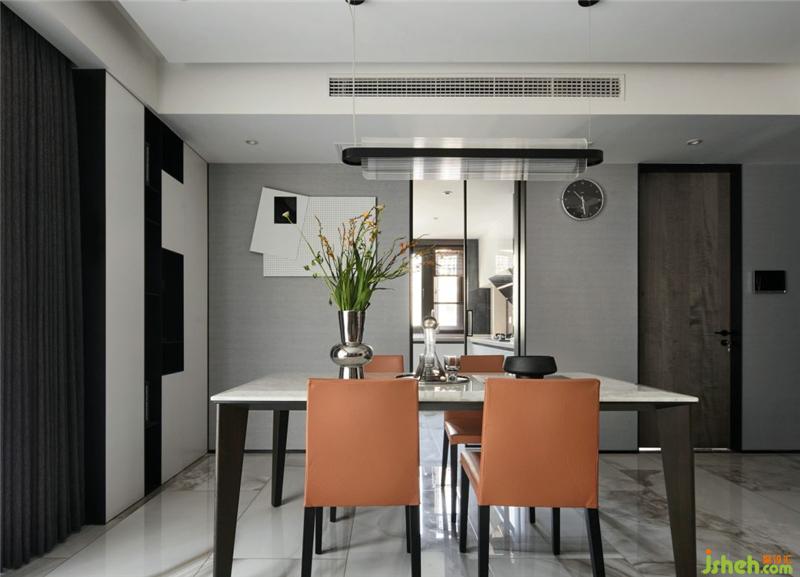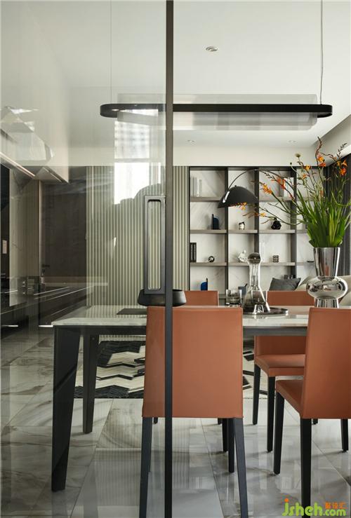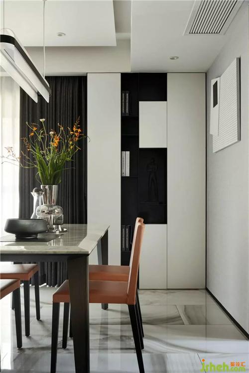 餐廳鋼琴配色的裝飾柜,在入戶一進(jìn)門就視覺聚焦,提升空間的藝術(shù)氣息。