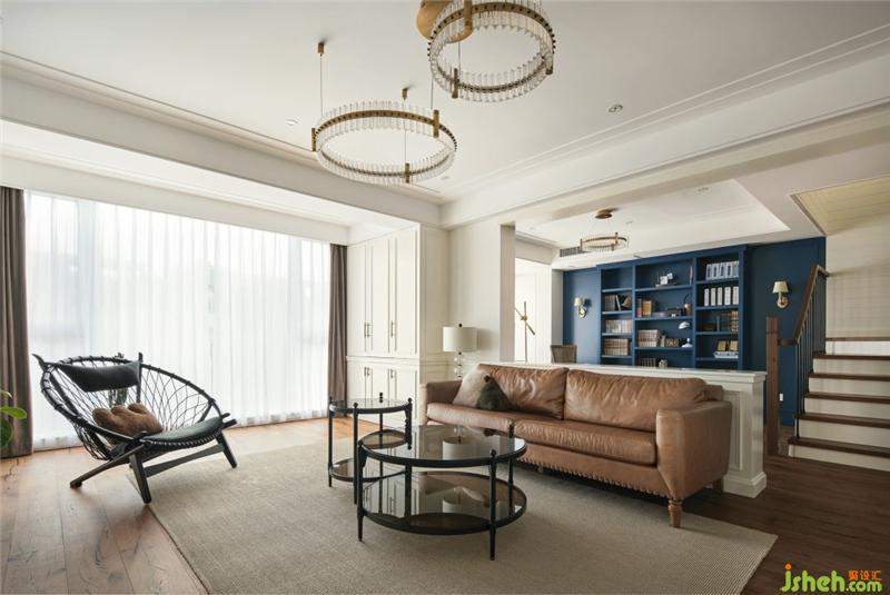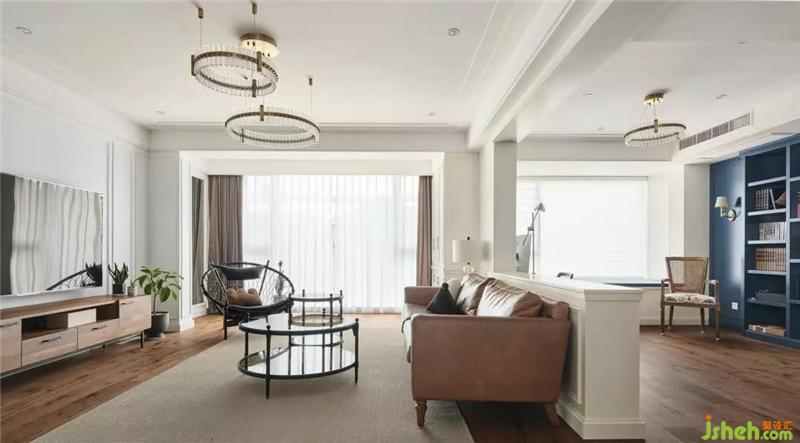 開放式的空間布局納入更多自然清氣,空間通透而明亮,大面積的白色作為基底,杭州裝修設(shè)計(jì)配以原木地板及棕色皮質(zhì)家具來豐富空間的質(zhì)感,充滿活力的藍(lán)色點(diǎn)綴其中,搭配去繁從簡的留白藝術(shù),可以大大滿足城市人對于自然生活的期待。