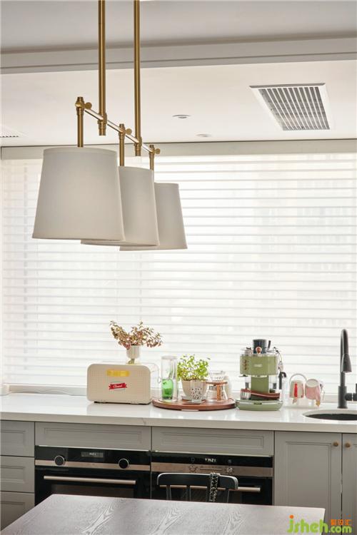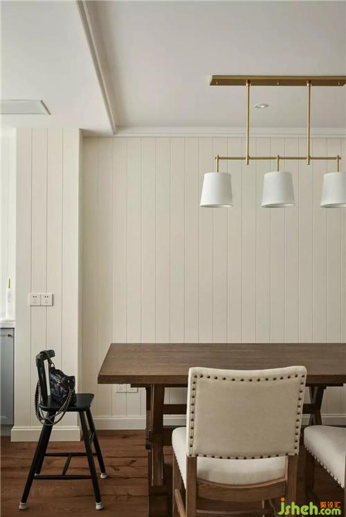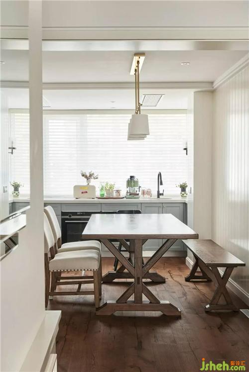 原木色是對美式的最好詮釋,餐廳原木色的餐桌椅和不同形式米白色的墻面,配以淺灰色櫥柜,沐浴在陽光之下,讓整個家居環(huán)境散發(fā)出一種怡人的氣氛,讓人置身其中,能夠獲得舒適與放松。