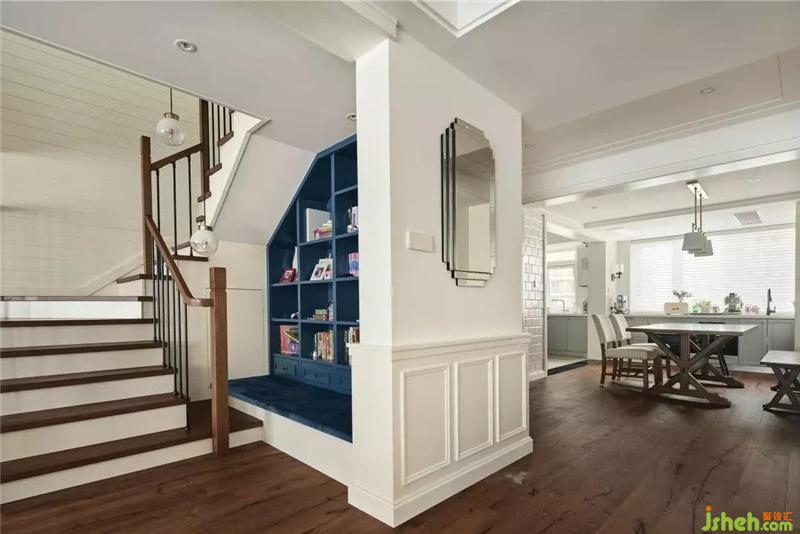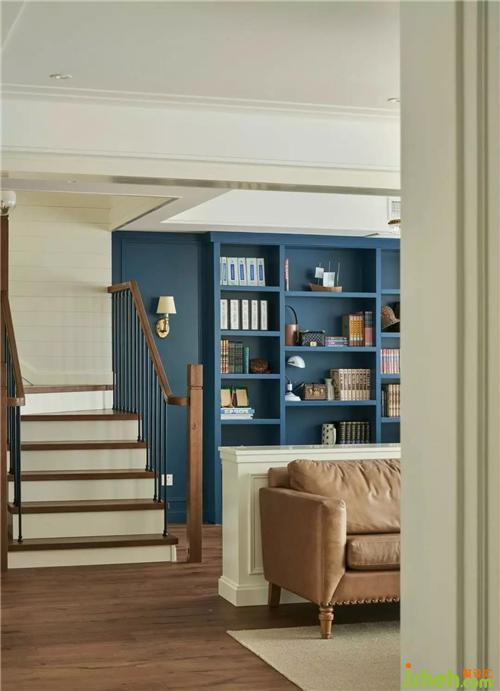 半開放式的書房與客廳及樓梯間空間共享,使場景更加靈動,周末的下午,慵懶的陽光灑向室內(nèi),聊天、閱讀、品茶、玩耍,平淡的生活中增添了許多趣味,讓空間和人都呈現(xiàn)最舒適的狀態(tài)。