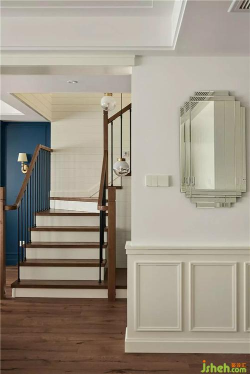 杭州裝修設(shè)計(jì)原木樓梯讓人感受自然寧?kù)o的氣息,同色扶手及黑色的鐵藝搭配,視覺(jué)和觸覺(jué)伴隨著空間的展開(kāi),自然傳遞。