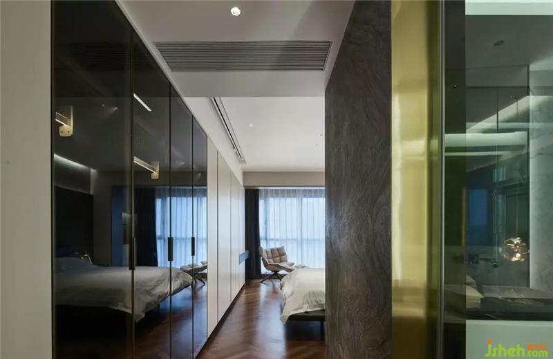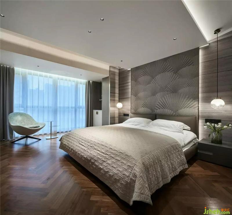一層主臥舒適的配色整體呈遞進式鋪展,細致而溫柔,暖咖的運用,杭州裝修設計為空間注入生機與靈氣,自然高雅。