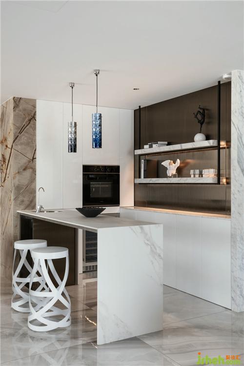 空間皮質(zhì)肌理、石材肌理、紡織肌理以低調(diào)簡(jiǎn)單的姿態(tài)彼此映襯搭配,摒除嬌媚俗套的飾面,豐富的內(nèi)飾層次給予一個(gè)高級(jí)的視覺(jué),展現(xiàn)出簡(jiǎn)約極致的現(xiàn)代空間美學(xué)。