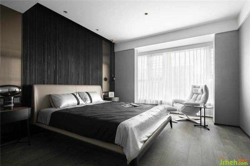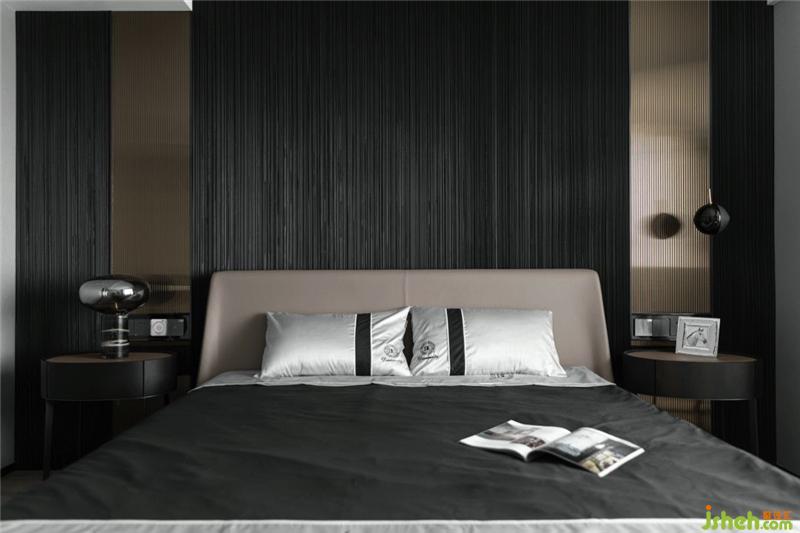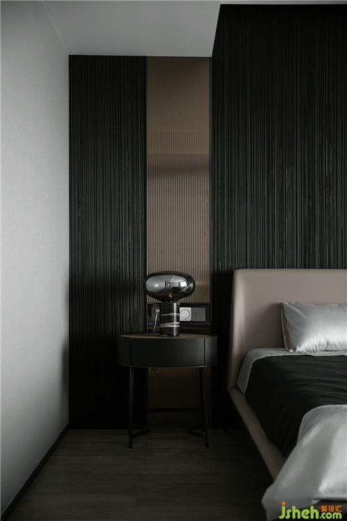 深灰調(diào)的壁紙背景和長虹玻璃線條肌理美妙,黑白灰的色調(diào)營造出極簡(jiǎn)輕奢的意境。