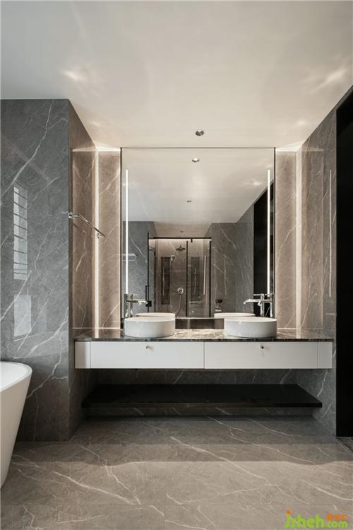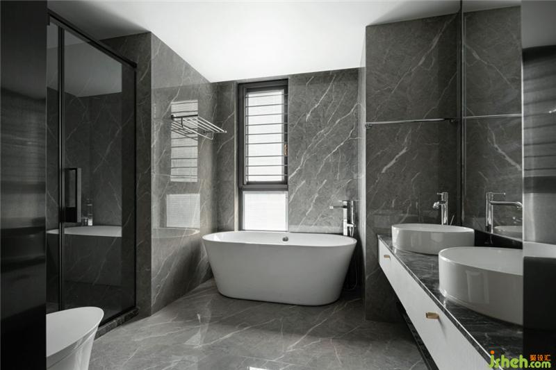大面積的灰色大理石其細(xì)膩光澤質(zhì)感覆蓋整個(gè)衛(wèi)浴,白色陶瓷點(diǎn)綴其中,杭州裝修設(shè)計(jì)極簡(jiǎn)質(zhì)感油然而生。