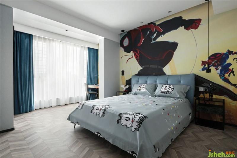 兒童房趣致的背景壁畫符合孩童的審美與活力,生動(dòng)的形象增加空間感。