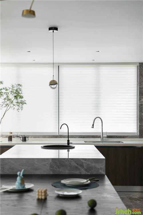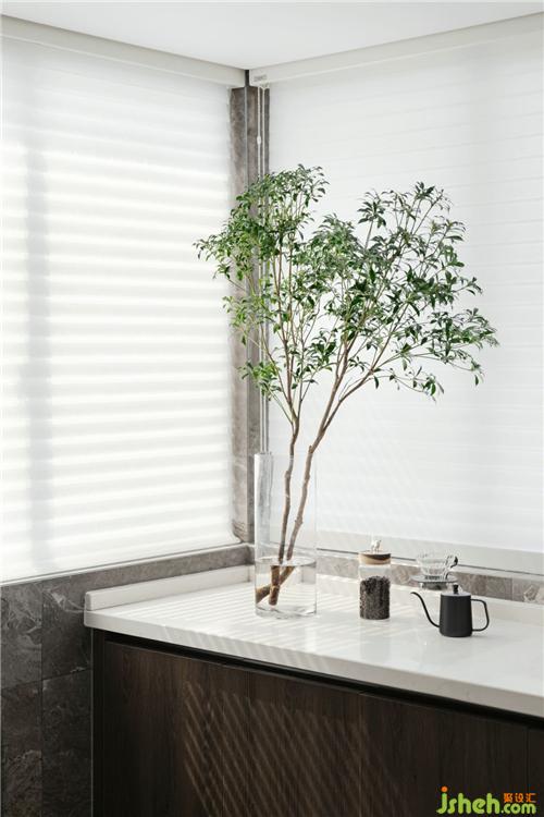 整個(gè)家開放明亮,西廚也舒服地籠罩在陽光之下,安靜的午后,陽光濾過香格里拉簾,光影點(diǎn)綴房間,恬靜唯美,手沖一杯醇香的咖啡,靜享這一刻時(shí)光,生活除了杯盤刀叉的煙火氣,更有無處不在的藝術(shù)氣息,亦如我們會(huì)生活的業(yè)主小姐姐,總是滿室花香,一身美好。