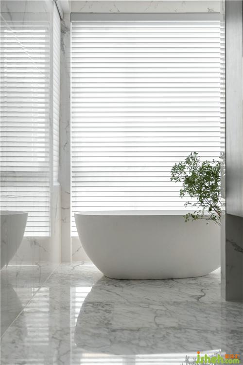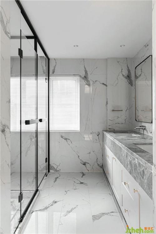 透過窗紗的光線變得柔美朦朧,映照衛(wèi)生間大面積的白色花紋大理石,整個(gè)杭州裝修公司空間純凈自然而不乏現(xiàn)代時(shí)尚質(zhì)感。